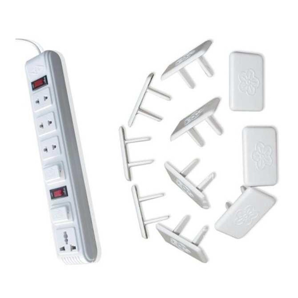 - 10 nút bịt ổ điện loại 2 chấu có chốt an toàn, giúp bám chặt vào ổ sau khi cắm mà chỉ người lớn mới có thể tháo lắp được.