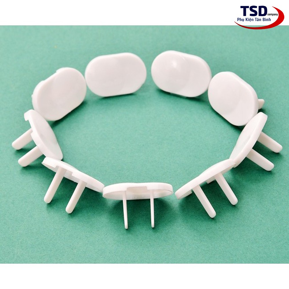 - 10 nút bịt ổ điện loại 2 chấu có chốt an toàn, giúp bám chặt vào ổ sau khi cắm mà chỉ người lớn mới có thể tháo lắp được.