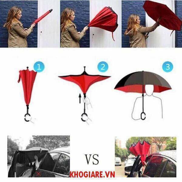 Ô gấp ngược tiện ích và độc đáo cho mọi gia đình với hiết kế đột phá, mở và đóng theo chiều ngược lại so với ô truyền thống. Tối ưu hóa khả năng chắn nước, nhất là trong không gian hẹp.- Nước được giữ lại bên trong sau khi gập, tránh việc làm ướt sàn nhà, khi cần làm khô chỉ cần dốc ngược ô lại.