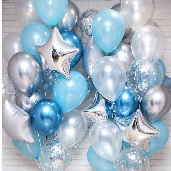 Combo 10 quả màu xanh dương nhạt, xanh mỹ, 3 quả sao bạc toCombo chùm bóng gồm: