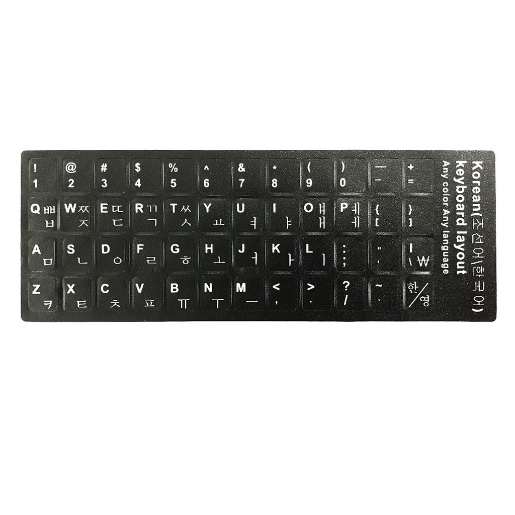 Bộ 10 Tấm dán bàn phím tiếng Hàn Quốc (Keyboard Layout Sticker)Miếng dán được thiết kế dựa trên bảng mã kí tự tiêng hàn và chữ latinh.