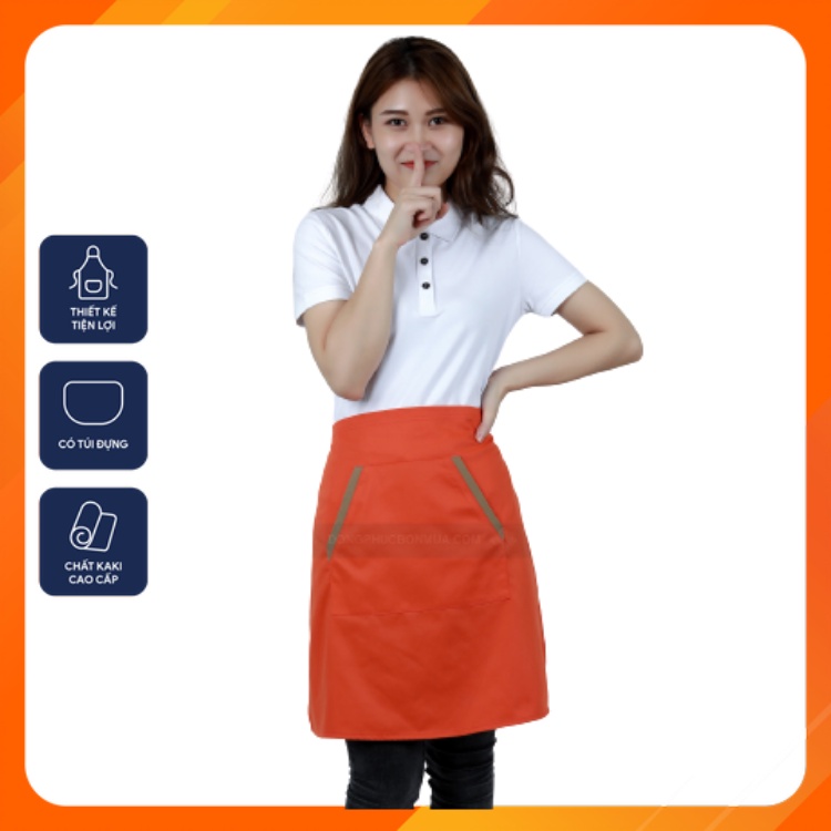 ✔️ Quy cách: Tạp dề ngắn nửa người, có 2 dây cột sau, có túi đựng phía trước tiện dụng để đựng sổ ghi chép, sổ order, điện thoại, bút…