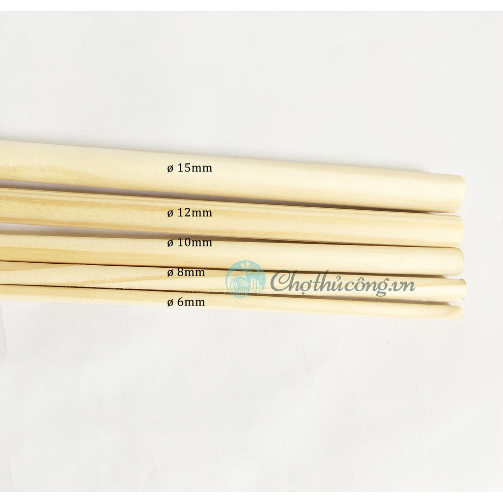 Combo 10 thanh gỗ tròn gỗ thông ĐK 0.8cm x 50cm làm handmade, decor, treo mành, phụ kiện macrame