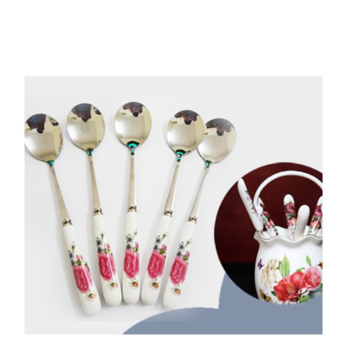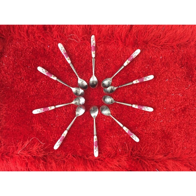 Nhà cửa & Đời sống > Bộ đồ bàn ăn > Bộ dao kéo || Combo 10 thìa cafe inox cán sứ in hoaCòn hàng