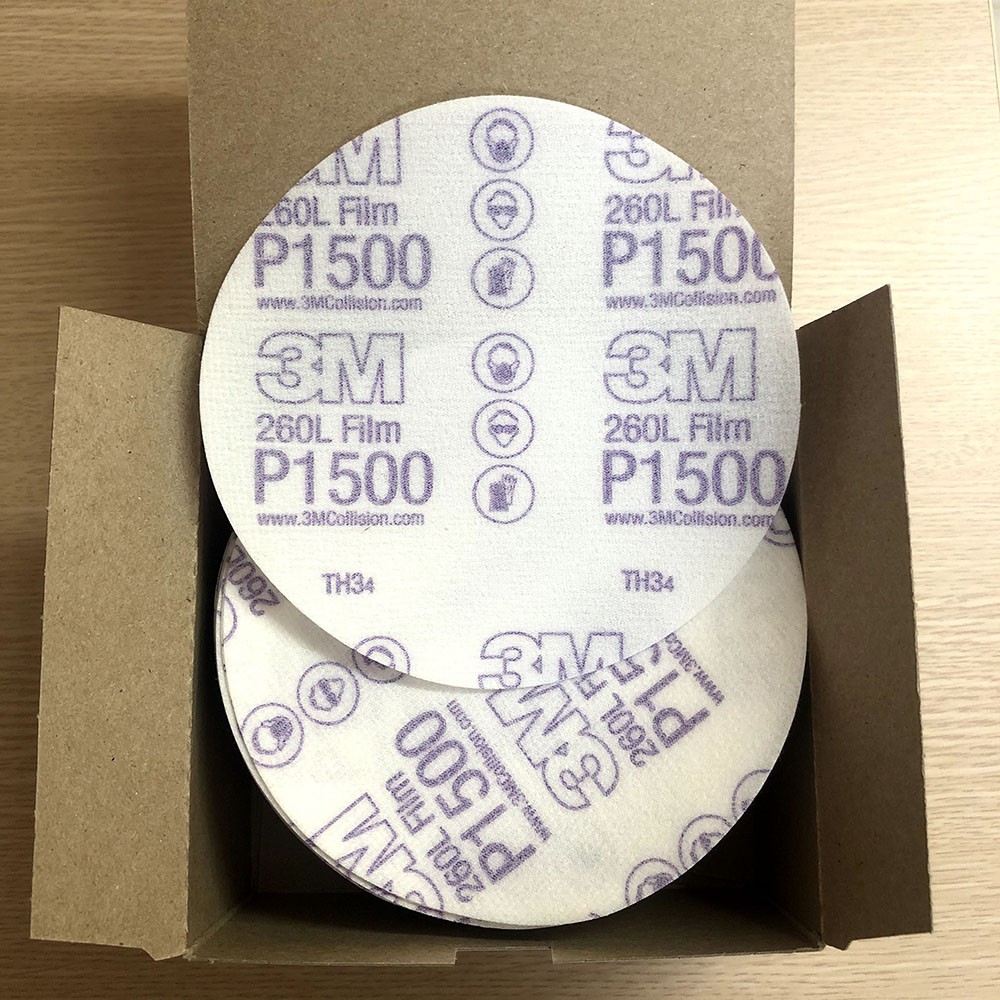 Combo 10 Tờ Giấy Nhám Tròn Đánh Bóng 3M- P1500 260l 6in– Giấy nhám tròn P1500 3M- 260L chứa hạt mài nhôm oxit cho độ cắt nhanh. Dùng để mài sửa lỗi bụi sơn, loại bỏ những vết xước cho độ hoàn thiện bề mặt tối ưu, giảm thời gian đánh bóng.