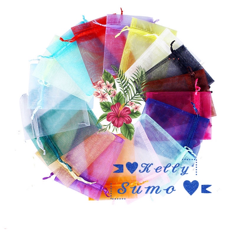 Combo 10 Túi vải voan dây rút đựng quà, trang sức , mỹ phẩm, đồ handmade nhiều màu