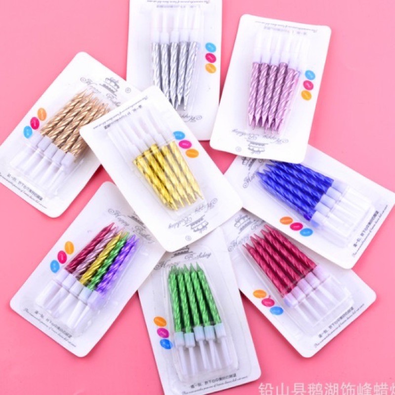Nhà cửa & Đời sống > Trang trí nhà cửa > Nến & đồ đựng nến || combo 10 vỉ nến xoắn nhũ, nến sinh nhật ,trang trí bánh kem phụ kiện bánh kemCòn hàng