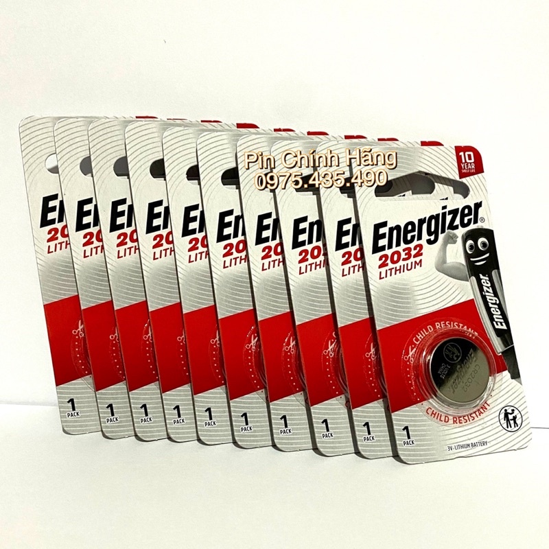 Combo 10 Vỉ Pin CR2032 3V Lithium Energizer Chính Hãng Vỉ 1 Viên