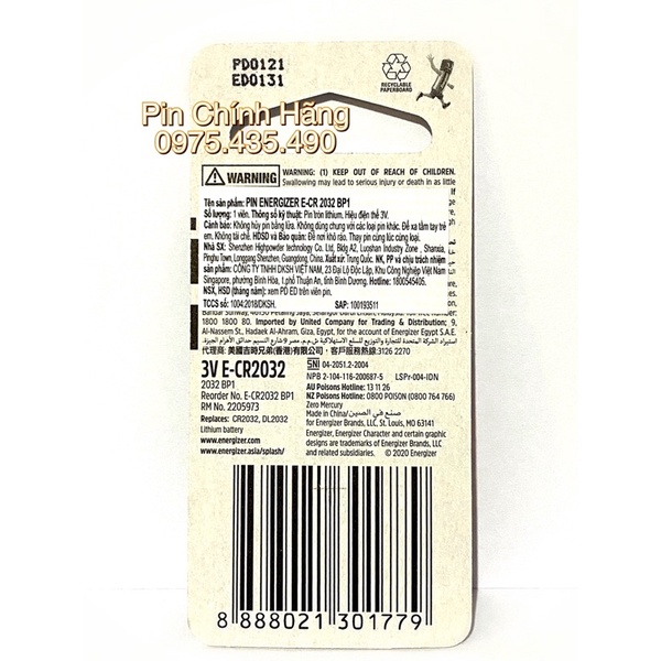 Pin Energizer Cr2032 lithium là dòng pin chuyên dùng cho các thiết bị điều khiển remot ô tô, quạt, máy đo tiểu đường, cân điện tử, nuôi nhớ máy tính laptop , máy tính bàn và nhiều thiết bị khác. Là một trong những mã pin được sử dụng phổ biến nhất trên thị trường hiện nay.- Với công nghệ sản xuất hiện đại, độ bền vượt trội ,Pin có khả năng giữ điện lên đến 8 năm nên bạn không phải lo khi mua về mà chưa sử dụng đến.