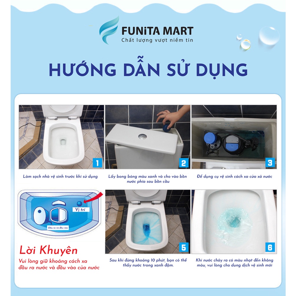 · Chờ 15 phút trước khi sử dụng để sản phẩm có tác dụng (nước trong bồn sẽ chuyển sang màu xanh).