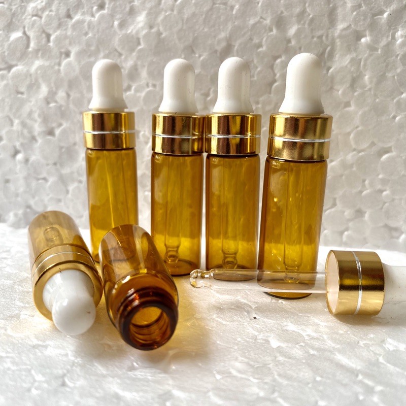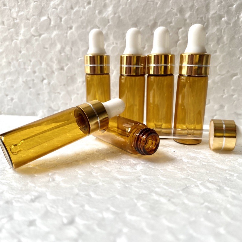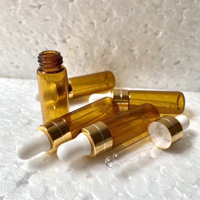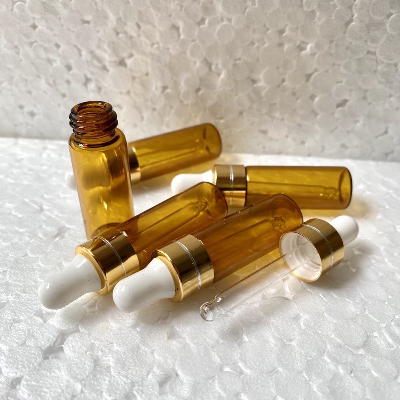 Combo 10 Vỏ Chai Chiết Tinh Dầu Mini 5ml, Chai thủy tinh nhỏ, Màu Nâu, Nút Bóp 5ml