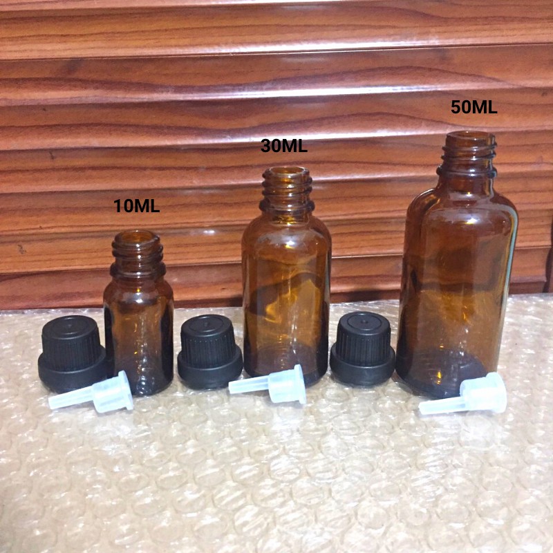 combo 10 Vỏ Chai Thủy Tinh chiết Xuất Tinh Dầu Nước Hoa - Chai Nâu+Nắp Đen + Nhỏ Giọt 10ml,30ml, 50ml,100ml