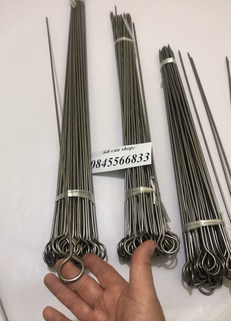 Giới thiệu Combo 10 xiên nướng inox phi 4 , dài 70cm , hình thật 100% có video kèm theo