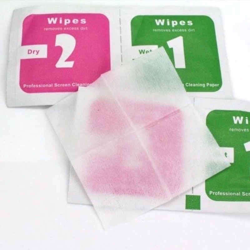 Combo 100 Bộ Giấy Lau Vệ Sinh Mặt Kiếng Điện Thoại (Bao Gồm Khăn Ướt Và Khăn Khô)