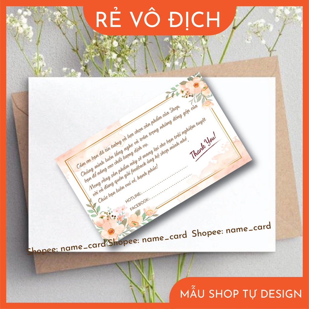 + Trên mỗi thiệp cảm ơn, name card sẽ có thông tin cửa hàng của bạn giúp khách hàng liên hệ với bạn khi sản phẩm lỗi hạn chế tối đa các đánh giá 1 sao