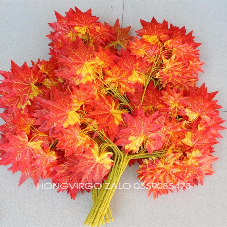 Combo 100 Cành Lá Phong Đỏ - Cành Lá Phong Giả Làm Cây Giả 1 cành 5 nhánh 25 lá - GIÁ TỐT