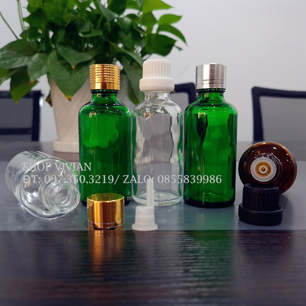 • Nắp nhựa PP màu đen/ trắng - nhôm vàng bạc , dễ đóng mở cùng nút nhỏ giọt.