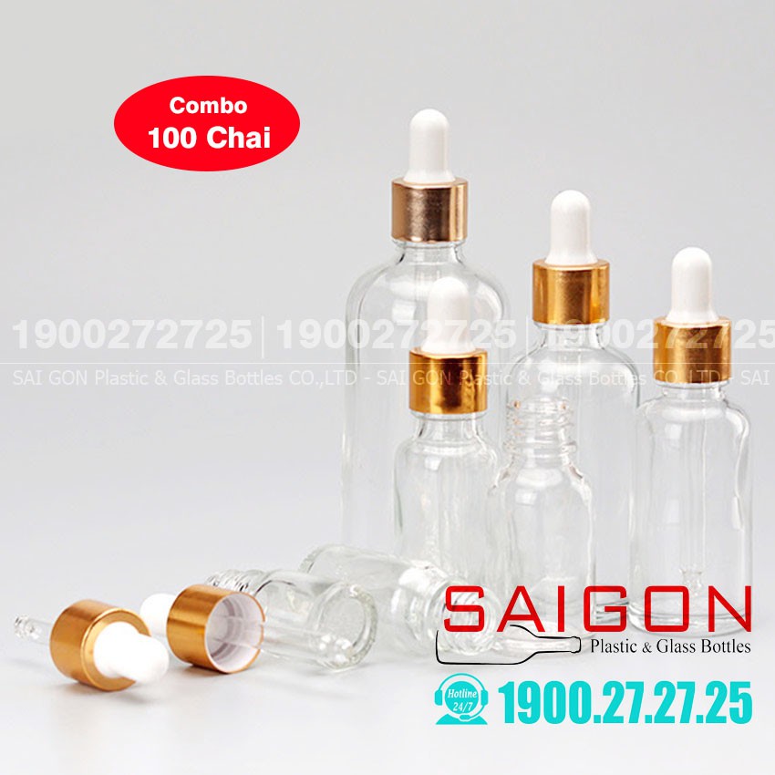 Giới thiệu Combo 100 Chai Tinh Dầu Trắng Nắp Bóp Khuyên Xi Vàng , Nhỏ Giọt | Tùy Chọn Dung Tích
