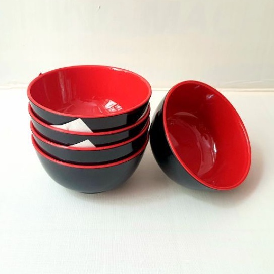 Chén cơm loại 1 bằng nhựa melamine cao cấp 2 lớp màu Đỏ Đen, bóng đẹp không bị bong trócKích thước: Ø 11.2 x 5.4 cm