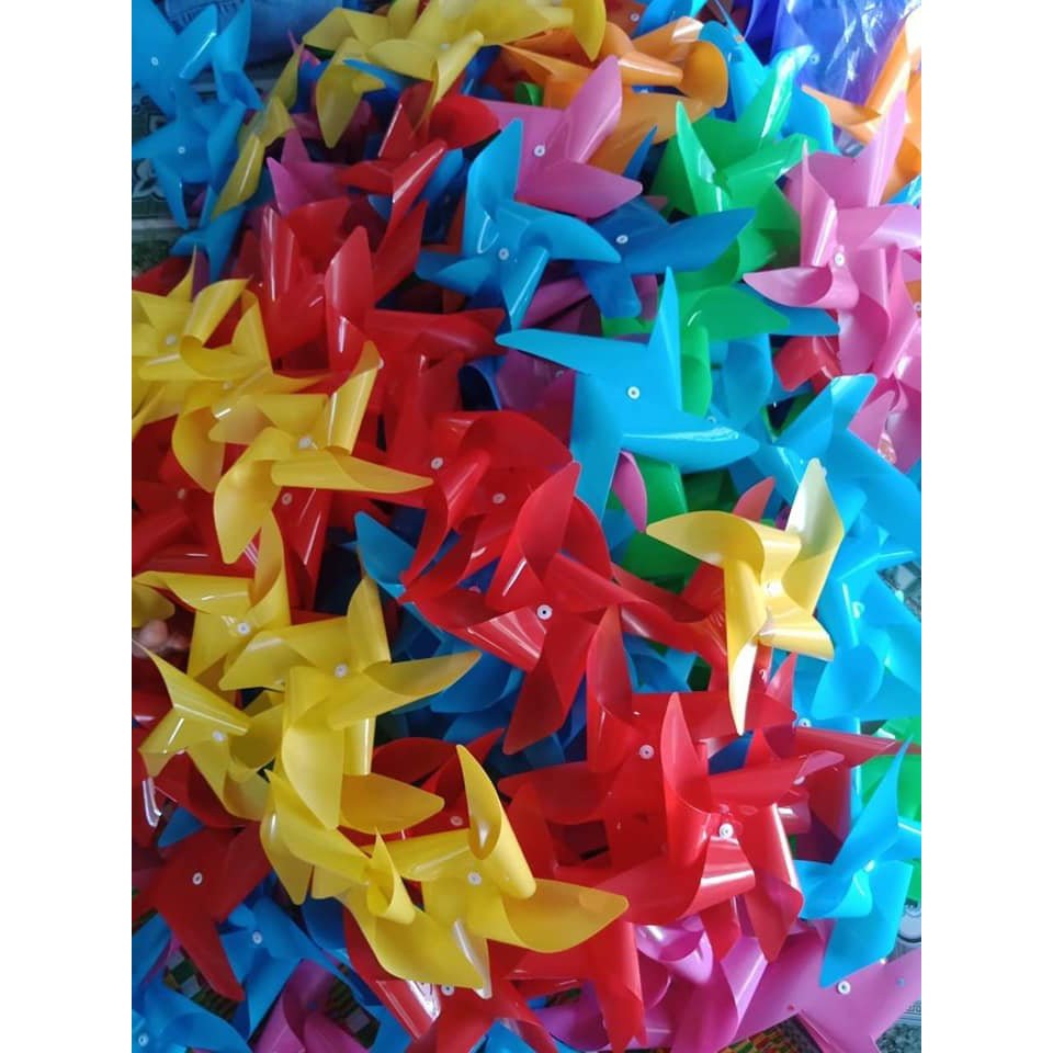 Combo 100 chong chóng nhựa đủ màu ĐK 25 cm dây treo đi kèm dây bọc nhựa