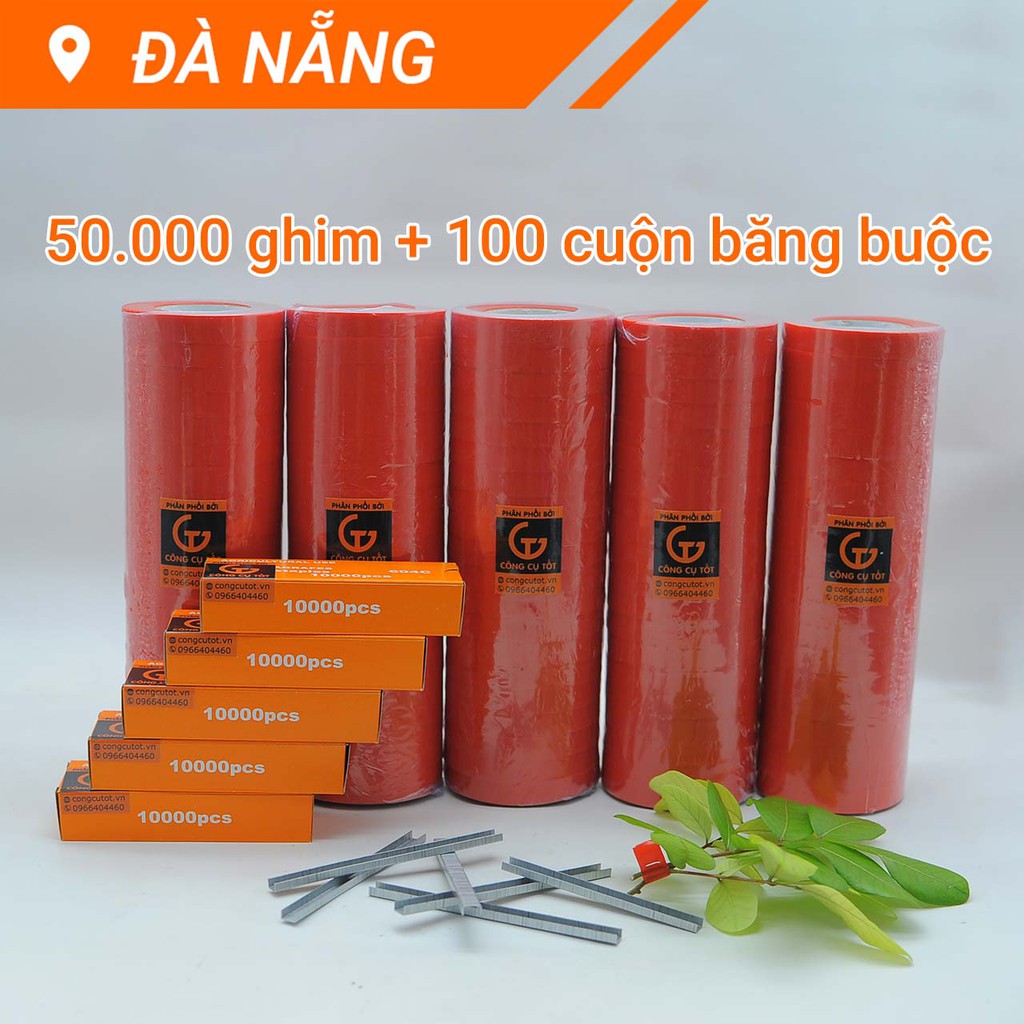 Combo 100 cuộn băng buộc cành kèm 5 hộp ghim 604C 50000 ghim