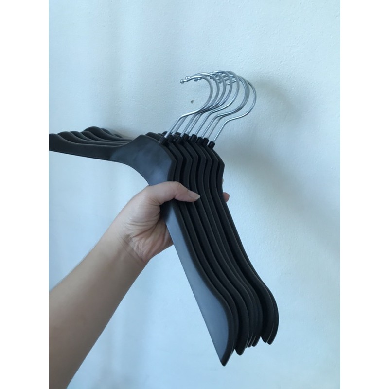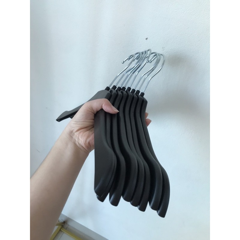 sản phẩm móc quần áo ưu điểm rất mỏng gọn thiết kế đơn giản, chất nhựa đen tuyền đầu móc inox xoáy chắc chắn.