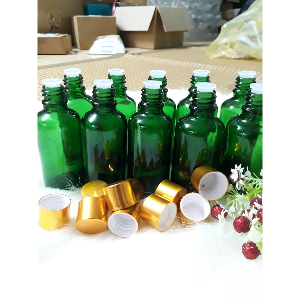 Giới thiệu Combo 100 lọ 50ml Xanh lá đựng tinh dầu nắp vàng