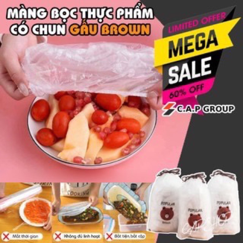 Nhà cửa & Đời sống > Dụng cụ nhà bếp > Màng bọc thực phẩm || Combo 100 Màng Bọc Thực Phẩm Có Chun Co Dãn Tái Sử Dụng Được Kèm Túi GấuSo sánh giá ×