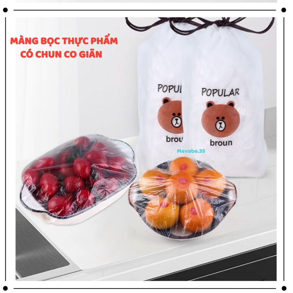Combo 100 Màng Bọc Thực Phẩm Có Chun Co Dãn Tái Sử Dụng Được Kèm Túi