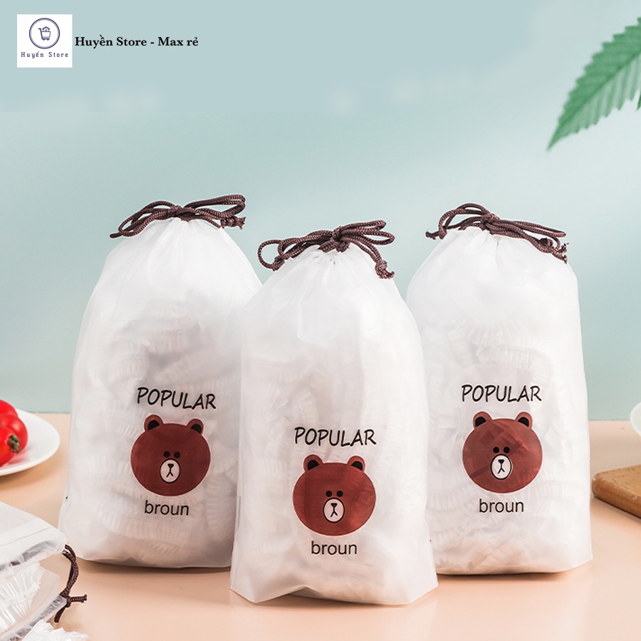 Combo 100 Màng Bọc Thực Phẩm PE Túi Gấu Có Chun Co Giãn Bọc Đồ Ăn, Chùm Đầu Đa Năng