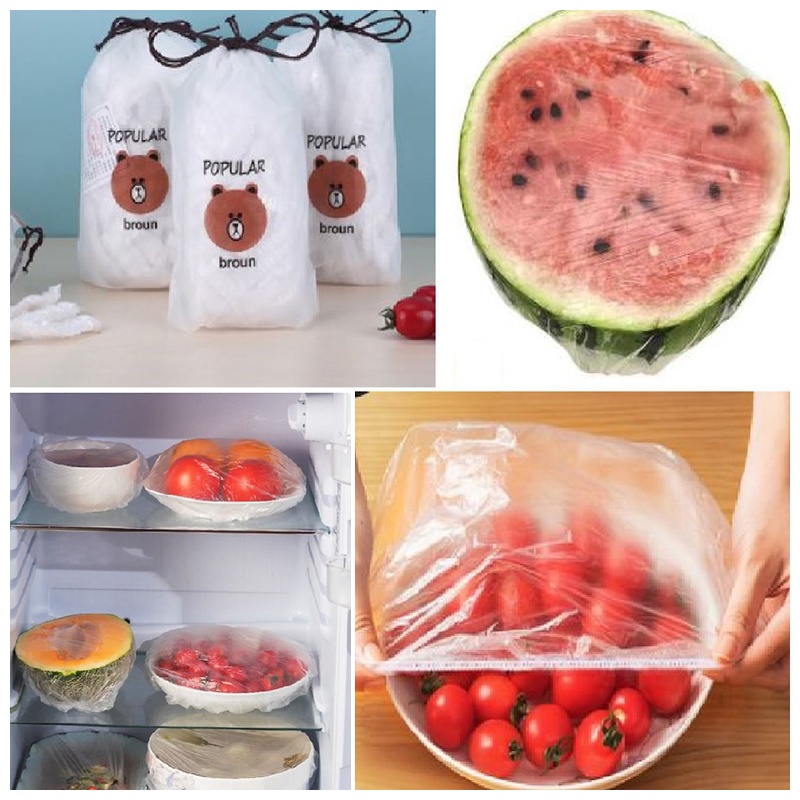 Nhà cửa & Đời sống > Dụng cụ nhà bếp > Màng bọc thực phẩm || ComBo 100 màng bọc thực phẩm PE túi gấu có chun bọc đồ ăn co giãn tái sử dụng loại đủSo sánh giá ×