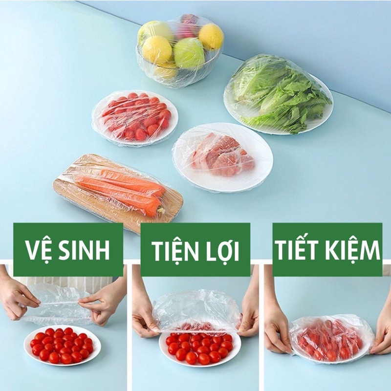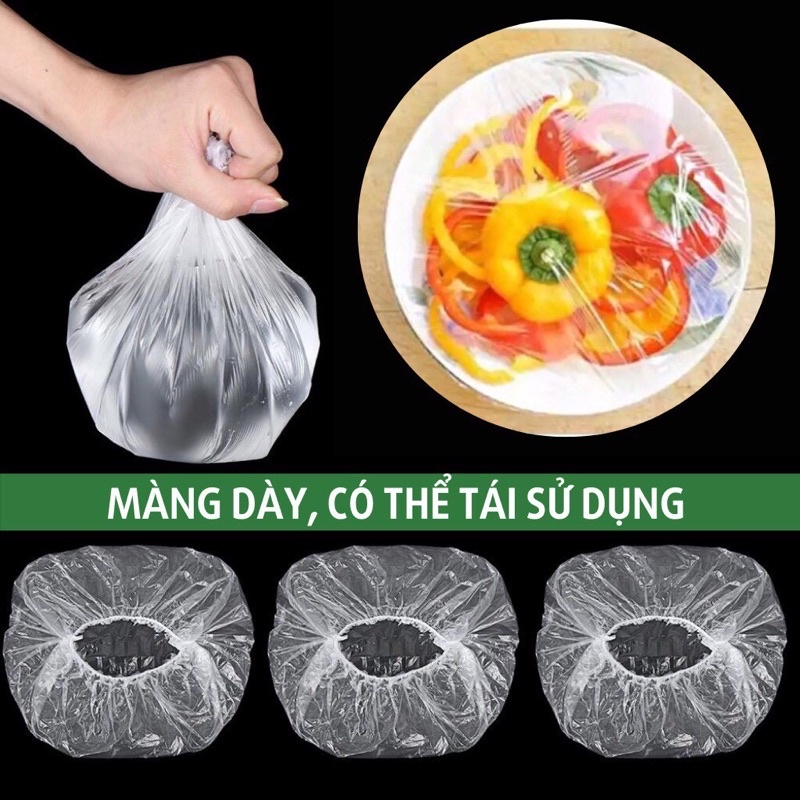 Combo 100 màng bọc thực phẩm, túi bọc thực phẩm nilong có chun co giãn, tái sử dụng