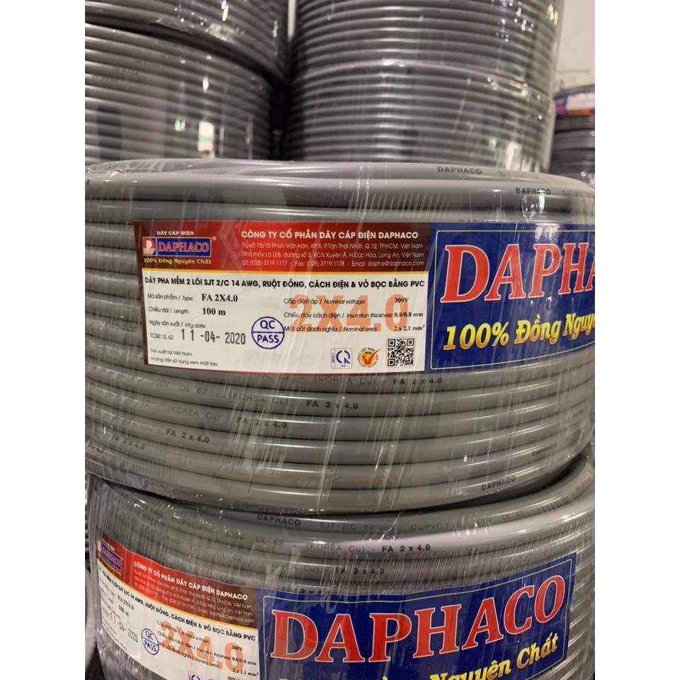 (Combo 100 Mét) Dây Điện Đôi Bọc 2 Lớp Tròn Xám 2 Lõi 2x1.0mm2 Đến 2x6.0mm2 Daphaco Ruột Đồng Nguyên Chất Chịu Tải Cao