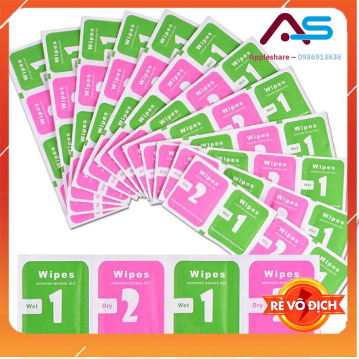 COMBO 100 miếng giấy lau màn hình điện thoại, hộ trợ dán kính cường lực