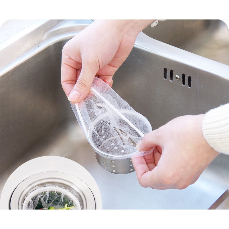 Combo 100 túi lọc rác bồn rửa bátTúi lưới lọc rác bồn rửa bát với chất liệu vải lưới nhuyễn giúp thoát nước và giữ lại tất cả rác thừa lại ngăn chặn gây tắt đường nước.