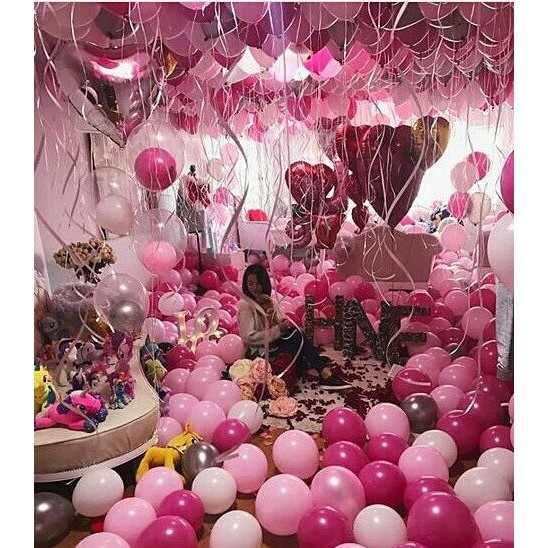 Nhà cửa & Đời sống > Trang trí nhà cửa > Khác || Combo 100 quả bong bóng ghi, hồng đậm và hồng daCòn hàng