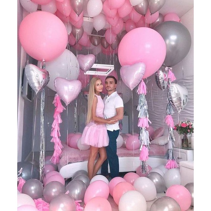 Combo 100 quả bong bóng ghi, hồng đậm và hồng da