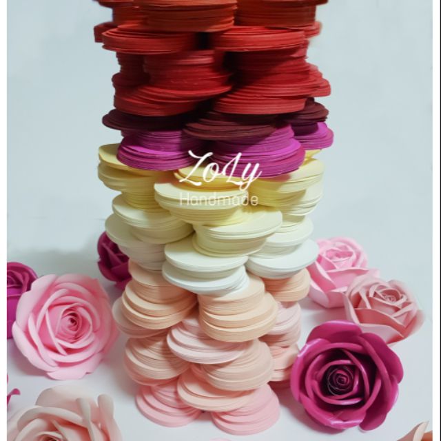 1 set vao gồm 5 lớp cánh hoa kích cỡ khác nhau, dùng để ghép hoàn thiện 1 bông hoa
