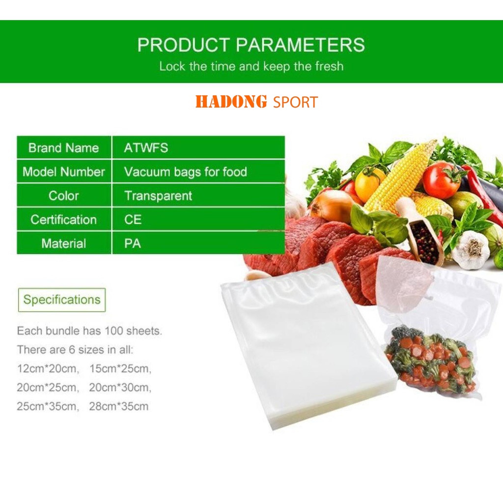 Giới thiệu Combo 100 túi bóng hút chân không đựng thực phẩm [kích thước 20*30 và 15*25 cm]