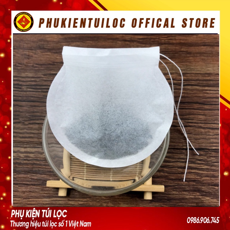 Combo 100 túi lọc giấy hình trống có dây rút lọc trà hoa, trà bột, cafe, bột thảo dược... Phukientuiloc.com