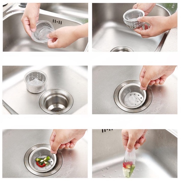Nhà cửa & Đời sống > Dụng cụ chăm sóc nhà cửa > Túi nilon & túi rác || Combo 100 túi lưới lọc rác thông minh cho bồn rửa chén bátCòn hàng