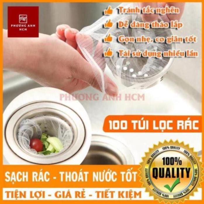 🚫 1 Bịch gồm 100 túi lưới lọc rác cho bồn rửa chén sử dụng một lần, sử dụng được trong gần 100 ngày.