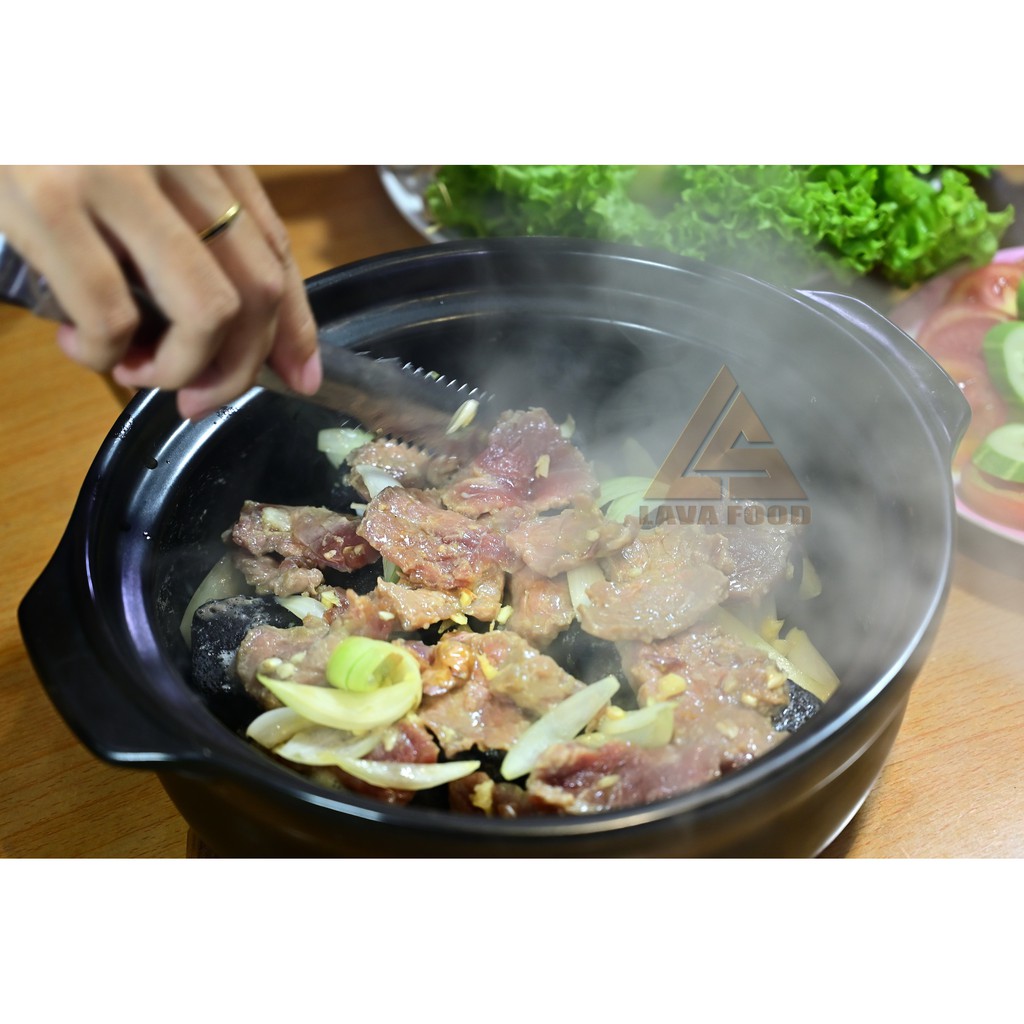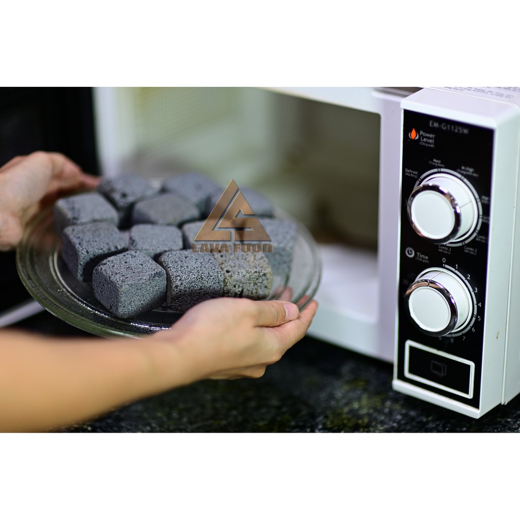 • Cách chế biến món ăn bằng đá núi lửa : trước khi nướng bạn đun nóng viên đá trong lò viba hay trực tiếp trên bếp gas, bếp hồng ngoại tầm 5-7 phút, sau khi đá đạt đủ độ nóng cần thiết.