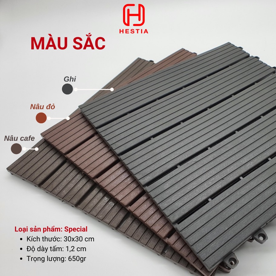 + Kích thước vỉ nhựa tiêu chuẩn 30cm x 30cm nhưng độ dầy được cải thiện còn 1cm phù hợp hầu hết với của ban công mà không lo chạm cửa khi đóng mở