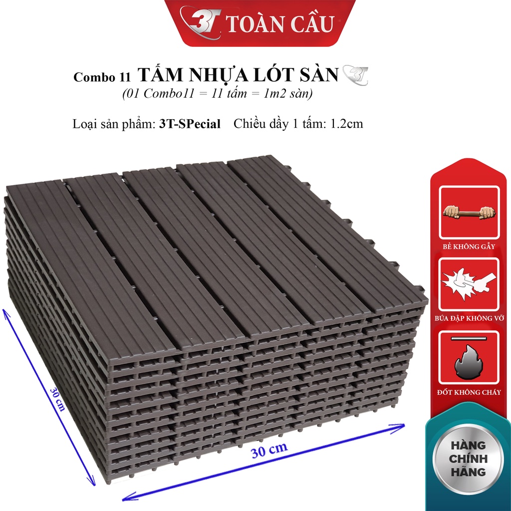Combo 11 Tấm Nhựa Lót Sàn Ban Công 3T-Special. Trang Trí, Chống Trơn Dùng Cho Lót Sàn Nhà Tắm, Sân Vườn, Hồ Bơi