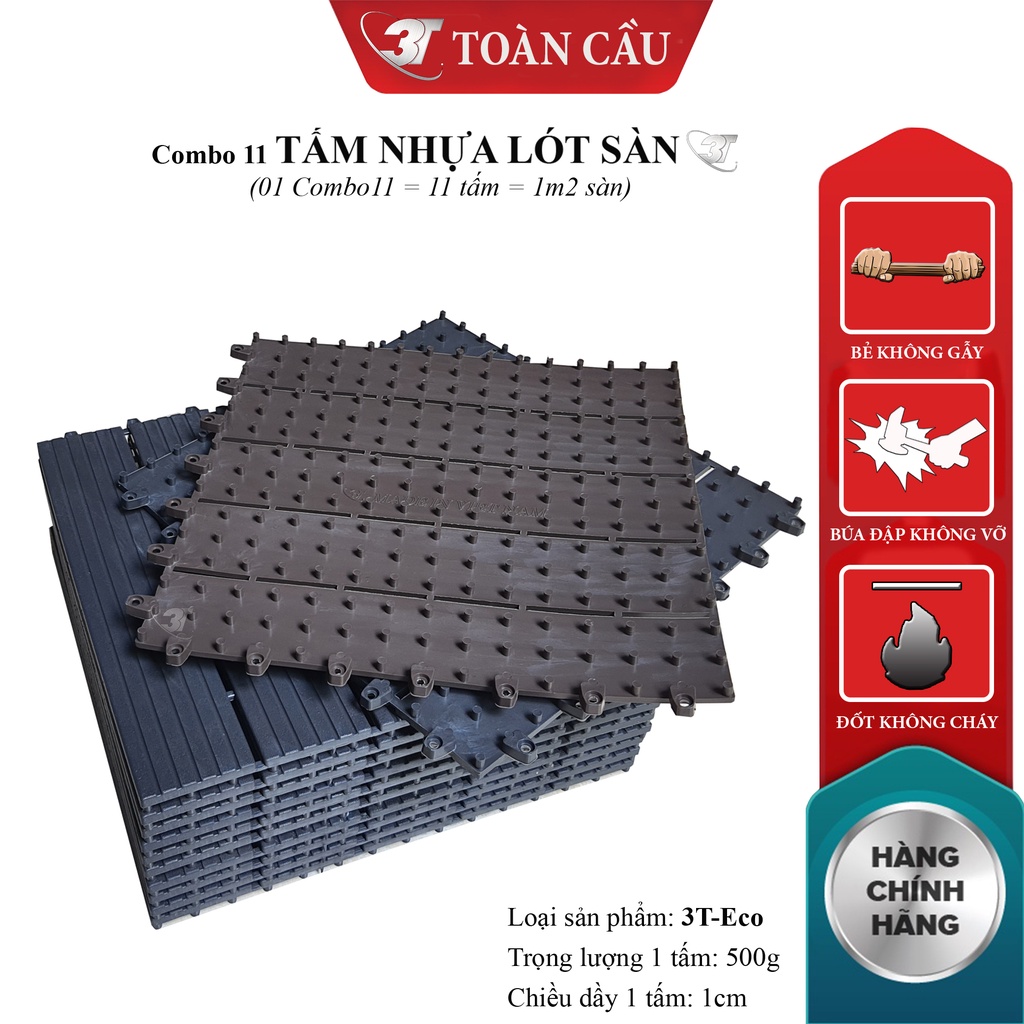 🎋 VỈ LÓT SÀN NHƯA 3T-ECO SIÊU BỀN(Giao hàng: 01 Combo11 gồm 11 tấm nhựa lót sàn 3T-Eco)