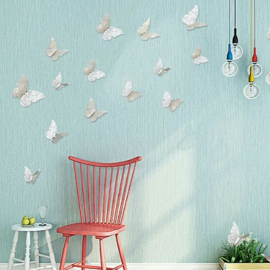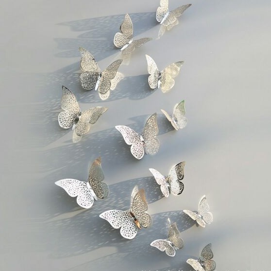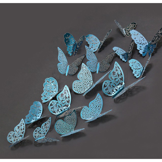 Bộ gồm 12 con bướm và keo dán hai mặtChất liệu: thép cán mỏng
