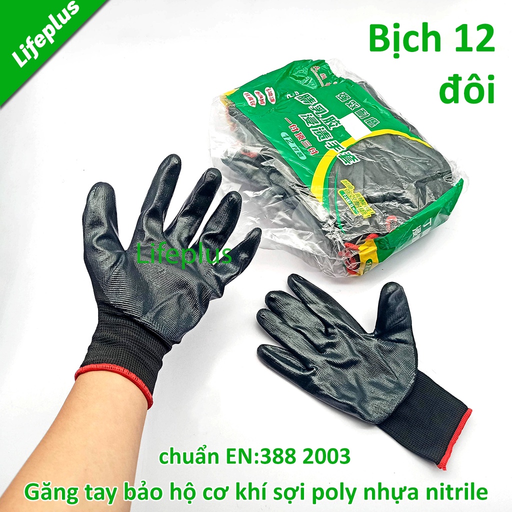 Nhà cửa & Đời sống > Dụng cụ & Thiết bị tiện ích > Găng tay, kính bảo hộ & mặt nạ || Combo 12 đôi Găng tay bảo hộ cơ khí phủ nhựa Nitrile đạt chuẩn EN 388:2016Còn hàng
