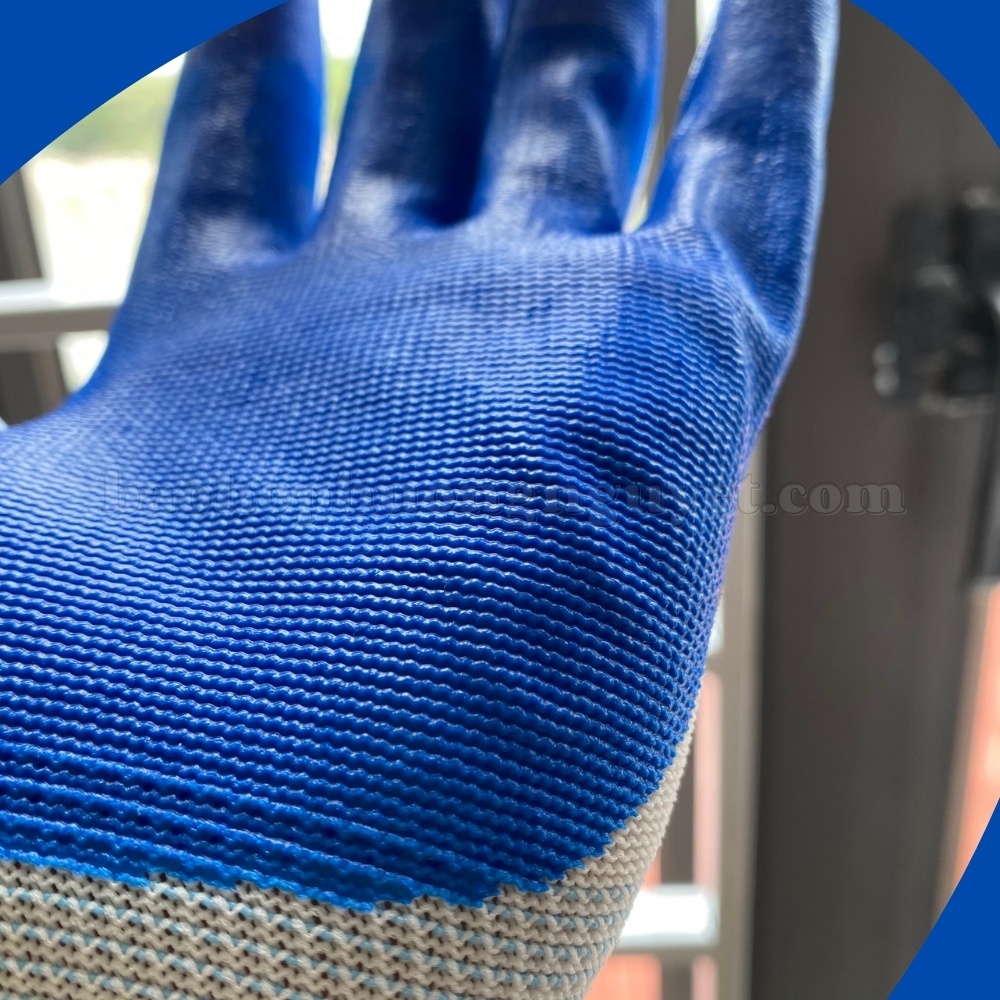 - Thiết kế: Thiết kế một mặt phủ PVC, mặt sau thoáng khí, vắt sổ cổ tay chắc chắn, dễ dàng thao tác