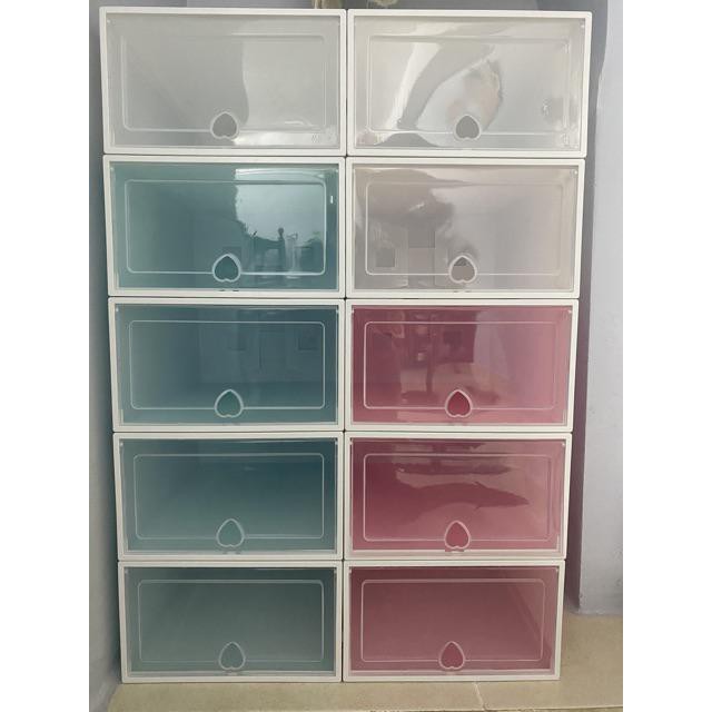 Combo 12 Hộp Đựng Giày Phối Màu, Hop Dung Giay Lắp Ráp Thông Minh Nắp Nhựa Cứng